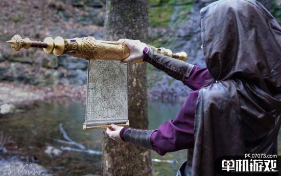 這兩個“卷軸”使用山羊皮包裹把手,鑲嵌了紫水晶,卷軸本身采用亞麻制作,手感也像真的一樣。