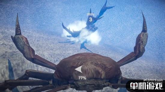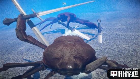 在《戰(zhàn)斗螃蟹》中,玩家控制的角色是螃蟹。戰(zhàn)斗可以“肉搏”,擊打、用蟹鉗“剪”、投擲武器等,也可以用蟹鉗揮舞冷兵器戰(zhàn)斗,還是雙持呢。