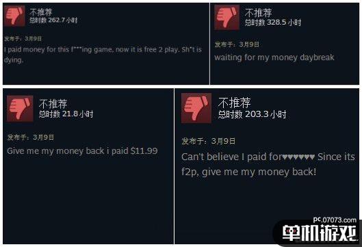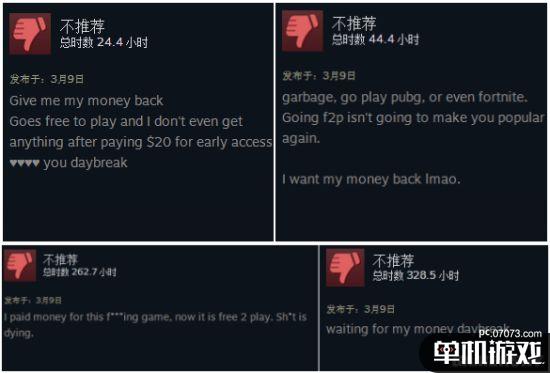 國(guó)內(nèi)外玩家的差評(píng)基本都集中在了《H1Z1》突然變成免費(fèi)游戲上,一些早先購(gòu)買了游戲的玩家紛紛表達(dá)了自己的不滿,不少人都要求退錢,看來(lái)雖然官方稱會(huì)送給這些已購(gòu)?fù)婕摇癏1Z1感謝包”,但并不能使讓他們滿意。
