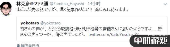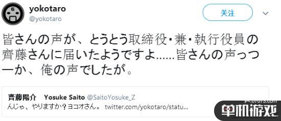 沒想到《尼爾:機(jī)械紀(jì)元》的制作人,同時(shí)也是現(xiàn)在SE的董事兼執(zhí)行主管的齊藤陽(yáng)介在之后發(fā)推“emm,那要做嗎?橫尾先生?”