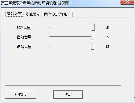 真三國(guó)無(wú)雙7:帝國(guó) n游俠原創(chuàng)啟動(dòng)配置工具漢化版,漢化了游戲的配置工具,使得音量調(diào)節(jié),語(yǔ)言選擇和圖形設(shè)置更加直觀方便,還在使用英文版或者使用臺(tái)版亂碼配置工具的同學(xué),可以下載本補(bǔ)丁試試。