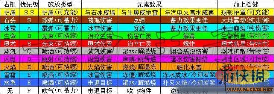 水系+火焰=蒸汽(除了和護(hù)盾組合無傷害,蒸汽是很強(qiáng)勢的,尤其和閃電結(jié)合更是強(qiáng)強(qiáng)聯(lián)手)