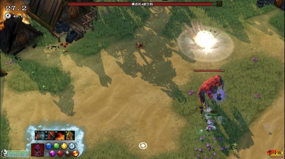 第三種攻擊是射出一個(gè)炸藥包,一段時(shí)間后爆炸,基本炸到不死也殘血,但是很好躲避