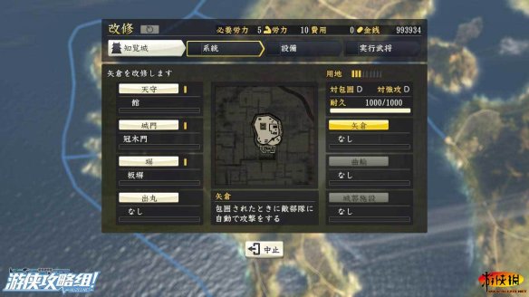 普請 ==>【改修】:不同于【建筑】的另外一個工事選項(xiàng),相當(dāng)于增強(qiáng)城市本身的防御工事,提供在城市附近戰(zhàn)斗時的戰(zhàn)斗加成,延長圍城消耗的時間,也可以略微影響城市人口數(shù)。