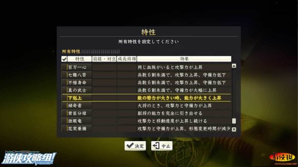 難怪有玩家說PK版才是本體,原版只是測試版,這相當(dāng)于清理BUG一樣改動算什么啊...當(dāng)然,修改了一些技能,比如【傾奇者】,現(xiàn)在只有當(dāng)前田慶次做大將的時候會亂走了,如果做副將的話會老老實(shí)實(shí)地服從命令,但是也沒有戰(zhàn)斗加成了。另外新增了部分特性,例如這神一般的【下克上】——當(dāng)玩家與勢力很大的大名作戰(zhàn)時,全能力大幅度上升。