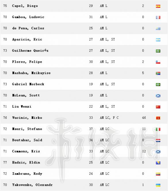 R列表為總評,81+為世界級,78-80是頂級聯賽中最好的球員,75-77頂級聯賽中堅實的后盾,72-74冠軍球隊球員,69-71實用聯賽球員。