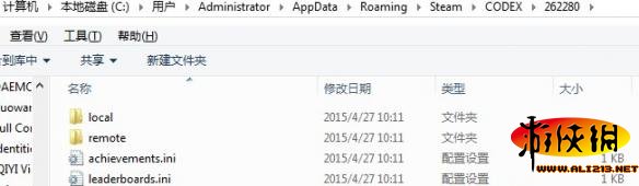 因為是C組破解的關(guān)系,所有存檔路徑前綴會有CODEX的文件夾,而游戲的存檔路徑則是在系統(tǒng)盤Users用戶名AppDataRoamingSteamCODEX262280remote中,包含了配置和存檔文件。