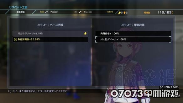 武器改造,能對(duì)武器所附加的特殊效果「記憶晶片(メモリーチップ)」進(jìn)行強(qiáng)化或替換。武器相互合成后,基底武器將繼承素材武器的記憶晶片。有著複數(shù)記憶晶片的武器,似乎還能附加複數(shù)效果。