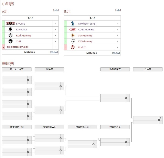 3.季后賽比賽為BO3,總決賽BO5,勝者組冠軍在決賽中有一場勝場優(yōu)勢