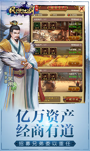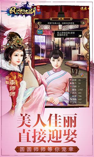 游戲介紹: 108梁山好漢,煞星與美人與你相伴!《風流江湖》是一款原創(chuàng)經(jīng)營養(yǎng)成手游,游戲以梁山頭領(lǐng)第一視覺生動呈現(xiàn),娶妻納妾、生孩養(yǎng)娃、培養(yǎng)子嗣、山寨爭霸、廣收梁山豪杰、玩家PK 、多人社交等精彩玩法。 【原滋原味劇情,超強代入感】 該游戲以中國四大古典名著之一的《水滸傳》為藍本,再現(xiàn)了原著小說中的梁山好漢故事。 【快意恩仇,任你江湖馳騁】 《風流江湖》力求把玩家從現(xiàn)實世界拉回古色古香的江湖世界,讓您親身感受一把韻味十足、快意恩仇的豪俠生活。 展開 開始玩