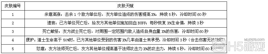 4,現(xiàn)在暫定有5個皮膚天賦: