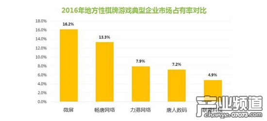 從目前地方性棋牌游戲市場(chǎng)的競(jìng)爭(zhēng)格局來看,已經(jīng)有多家企業(yè)年收入超過億元量級(jí),其中微屏市場(chǎng)份額排名第一,占比達(dá)到16.2%。