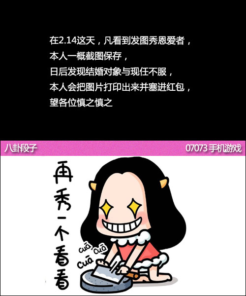 當(dāng)前位置:首頁 > 手機(jī)游戲 > 八卦 > 情人節(jié)秀恩愛的 你們都聽好了!