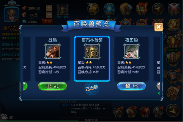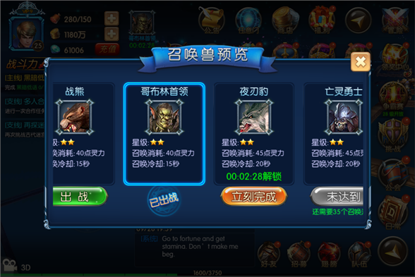召喚獸概況下方的按鈕是“出戰(zhàn)”,說明你已經(jīng)可以召喚這個怪物了,點擊了“出戰(zhàn)”,在下一次的副本中,你就可以召喚這個怪物。