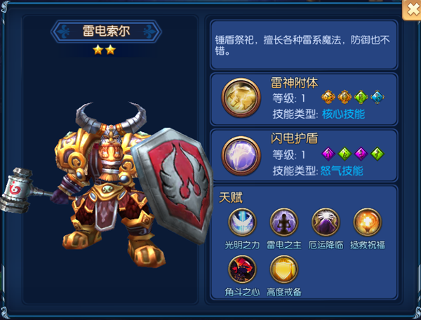 雷電索爾作為起始就能獲得的傭兵,其職業(yè)是祭祀,定位是防御型魔法戰(zhàn)士。