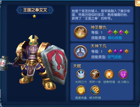 王國(guó)之拳艾文是一名集攻防于一體的傭兵,作為一名王國(guó)的出擊之拳,他不僅進(jìn)可攻,更退可守。一切都取決于玩家對(duì)他天賦和技能的搭配取舍。