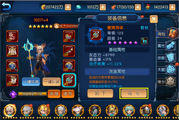 然后,看看你的小伙伴,和他們身上的裝備吧!找一個(gè)想要升階的裝備。