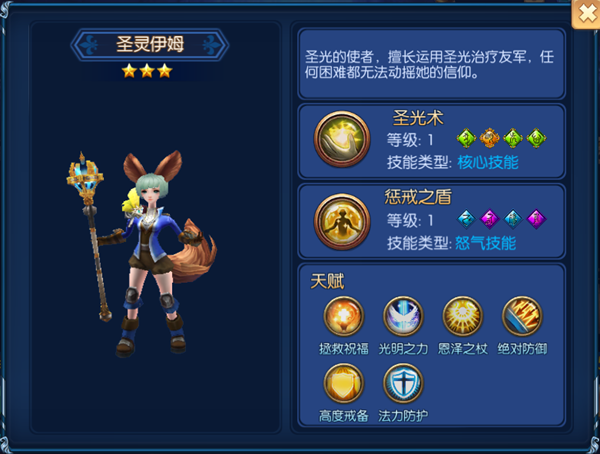 作為狐族的小妖精,使用一手讓人稱贊的圣光術治愈生命,使隊友可以毫無顧忌的沖鋒前線。