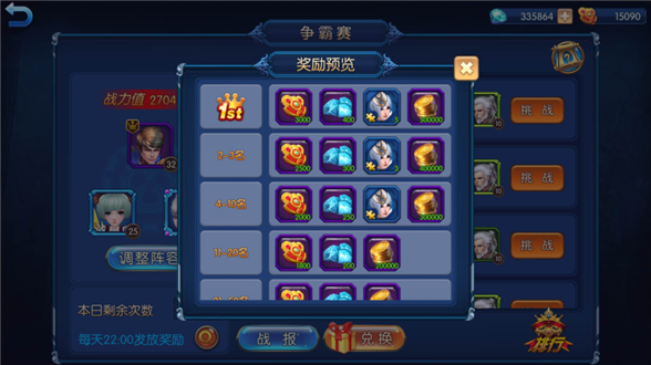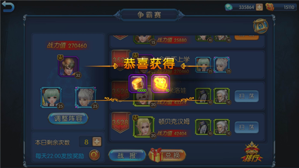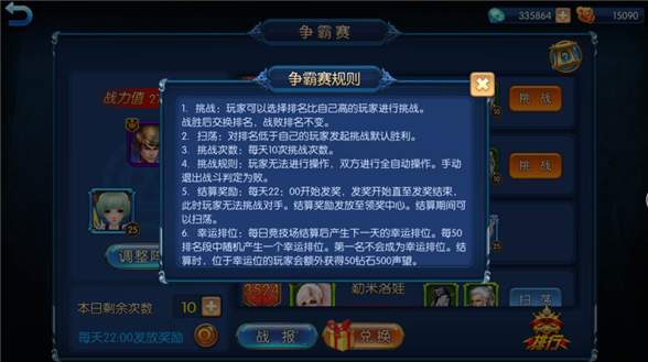 所以每天一定要使用完爭霸賽的挑戰(zhàn)次數(shù),想節(jié)約時間,掃蕩也可以輕松完成10次挑戰(zhàn)。