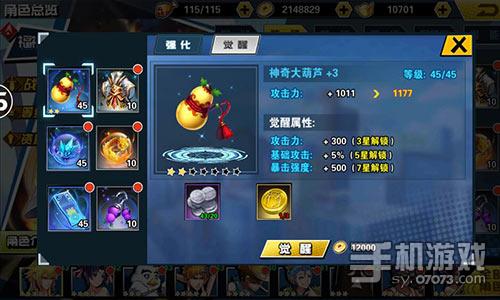 在角色裝備界面,可以看到當(dāng)前英雄裝備,所有裝備均可升級和覺醒,一鍵可以快速提升裝備等級,裝備覺醒之后不同星級可以解鎖相應(yīng)屬性。