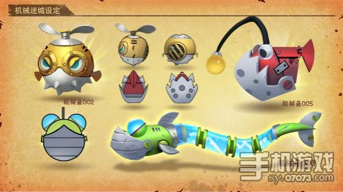 機械迷城中除了有大BOSS怪博士外,自然少不了種類豐富的機械魚,遨游在這復古迷幻的機械之城。有的機械魚看體形猶如一條細長的水蛇,身體由一段段天藍色透明的玻璃銜接而成,凸出的大眼泡,透出怪異的邪惡感。有的機械魚總像是在哪里見到過,下半身猶如河豚一般布滿尖刺,上身卻附著著蜜蜂一樣的黃色皮膚,這一切由金屬構造而成,熟悉的形態(tài),特殊的成色,營造出獨特的觀感。