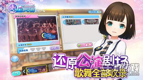 《星夢(mèng)學(xué)院》收錄了SNH48歌舞,完美還原劇場(chǎng)公演。在培養(yǎng)偶像的過(guò)程中,玩家可以選擇公演曲目,并為每首歌曲安排最合適的出演的成員。在公演中玩家會(huì)有機(jī)會(huì)獲得粉絲,粉絲數(shù)量越多,來(lái)劇場(chǎng)看公演的粉絲也會(huì)越多。公演過(guò)程中還可以選擇為歌曲進(jìn)行應(yīng)援,玩家作為經(jīng)紀(jì)人可帶領(lǐng)現(xiàn)場(chǎng)觀眾一起為舞臺(tái)上演出的成員進(jìn)行應(yīng)援CALL,應(yīng)援玩法為音樂(lè)節(jié)奏游戲,所獲成績(jī)?cè)胶?,就能進(jìn)一步增加資源獲得數(shù)量。