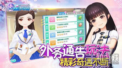 在星夢(mèng)之路中玩家有機(jī)會(huì)碰上各種外務(wù),安排最適合的成員參與即可。所有外務(wù)都有成功率概念,對(duì)角色的技能,等級(jí),甚至著裝都有要求,滿足這些要求,外務(wù)的成功率會(huì)上升。隨著劇情推進(jìn),外務(wù)的種類與要求會(huì)越來(lái)越難,報(bào)酬也會(huì)越來(lái)越高,更有不同的奇遇場(chǎng)景地圖等待拓展??傮w而言,玩家所擁有的成員越多,能力越強(qiáng),所能完成的外務(wù)也就越多。在源源不斷的外務(wù)通告及奇遇中,偶像會(huì)逐漸成長(zhǎng)并收獲越來(lái)越多的粉絲,成為高人氣的大明星!