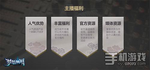 據(jù)悉,《夢想江湖》為主播提供了海量的福利和特權(quán)。除了能先人一步知曉游戲內(nèi)容外,還能獲得官方和媒體的聯(lián)合推薦;定期獲得官方送出的游戲資源犒賞!