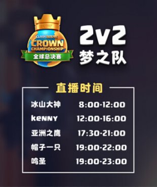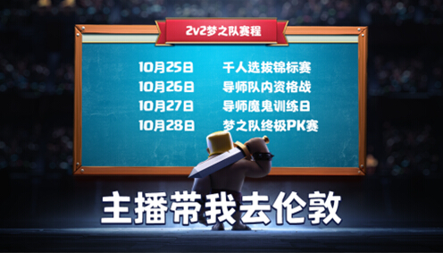 鳴圣、帽子一只、亞洲之鷹、冰山大神、Kenny五位主播將化身夢(mèng)之隊(duì)導(dǎo)師,各自挑選兩名水友組成2V2戰(zhàn)隊(duì)進(jìn)行對(duì)戰(zhàn),冠軍戰(zhàn)隊(duì)的兩名成員將獲得終極福利——同五位導(dǎo)師一起前往倫敦,現(xiàn)場(chǎng)見證CR世界冠軍的誕生!