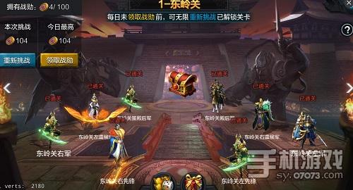玩家可通過(guò)挑戰(zhàn)每個(gè)關(guān)卡的8名守城將領(lǐng)并領(lǐng)取戰(zhàn)勛后領(lǐng)取關(guān)卡寶箱并解鎖下一關(guān)卡;