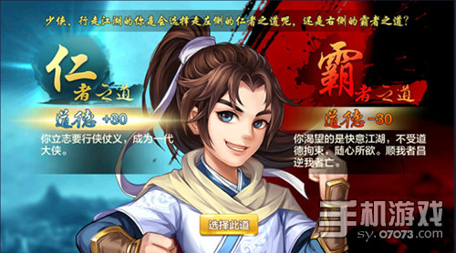 道德是一種非常重要的屬性,游戲開(kāi)始時(shí),玩家可以選擇“仁者之道”或者“霸者之道”,對(duì)應(yīng)游戲中不同的支線(xiàn)劇情。