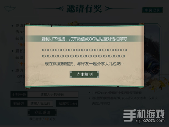 第二步:填寫手機號,輸入正確的手機驗證碼后,點擊‘立即邀請’復(fù)制如下鏈接給好友