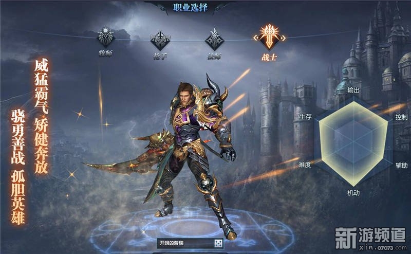 游戲開(kāi)局,四種職業(yè)供玩家選擇。右側(cè)顯示角色的能力數(shù)值。