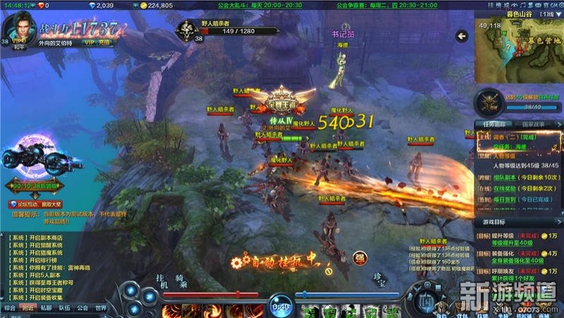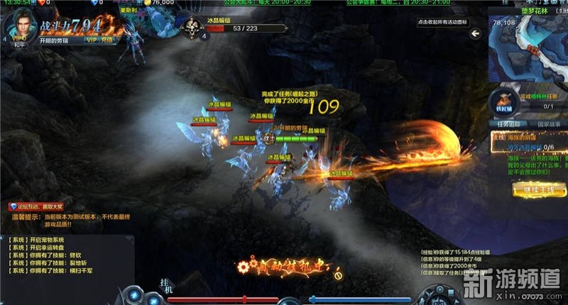 開(kāi)啟左下角掛機(jī)功能,角色自動(dòng)戰(zhàn)斗。玩家僅需跟蹤右側(cè)任務(wù)欄的完成情況,省時(shí)省力。