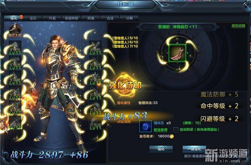玩家等級(jí)每提升一級(jí),即可消耗一定的金幣和強(qiáng)化石為全身進(jìn)行強(qiáng)化。