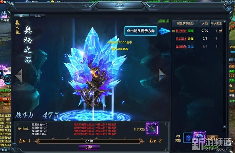 41級(jí)可解鎖神石系統(tǒng)。每天完成系統(tǒng)推薦任務(wù),可獲得一定能量值。當(dāng)能量值滿后 ,即可升階為下一等級(jí)。