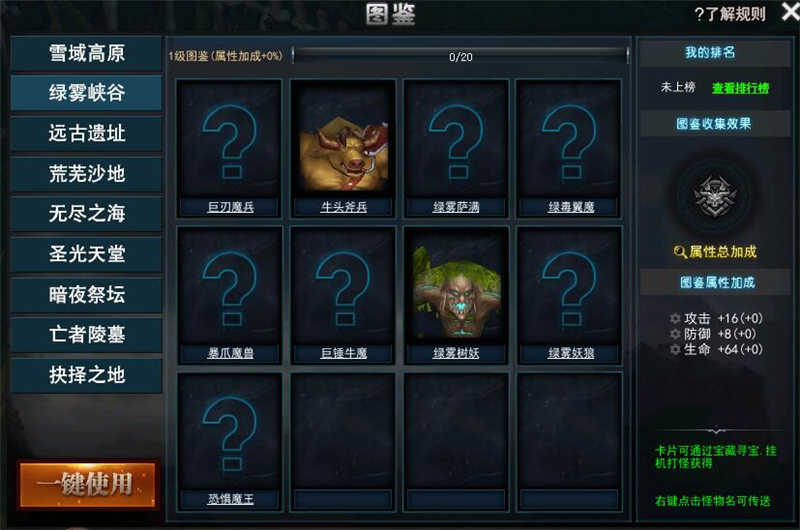 圖鑒,反復(fù)刷怪可獲得怪物卡片,右鍵點(diǎn)擊可直接傳送怪物所屬位置。