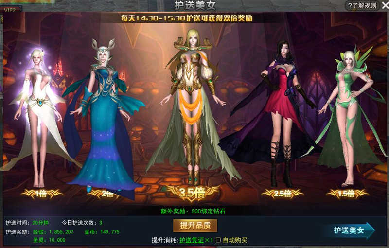 護(hù)送美女,可以獲得大量獎(jiǎng)勵(lì);當(dāng)然,也會(huì)被其他玩家劫持。