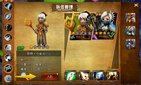 隊伍管理,不同的角色還可搭配構成伙伴,有屬性加成。