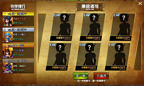 酒館招募,招募人物完全隨機,全憑玩家的運氣。