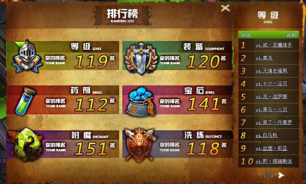 本作排行榜具備了詳細的分類,玩家可以從多維度查看排名。