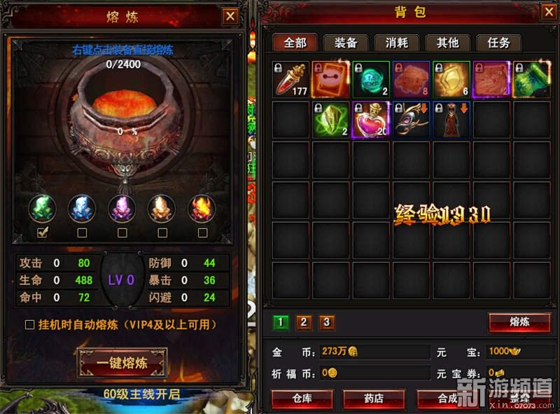 熔煉用于將不需要的裝備兌換為熔煉經(jīng)驗(yàn),熔煉經(jīng)驗(yàn)滿后可提升熔煉等級(jí)。