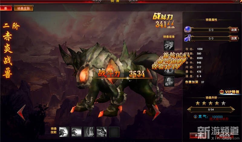 玩家可消耗真氣進(jìn)階騎獸??纱┐黩T獸裝備來(lái)提升屬性。騎獸品階越高,屬性、戰(zhàn)力及外形也會(huì)隨之提升。
