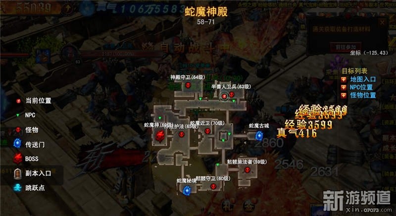 在地圖中玩家可以查看自身所在位置以及本地圖的怪物。