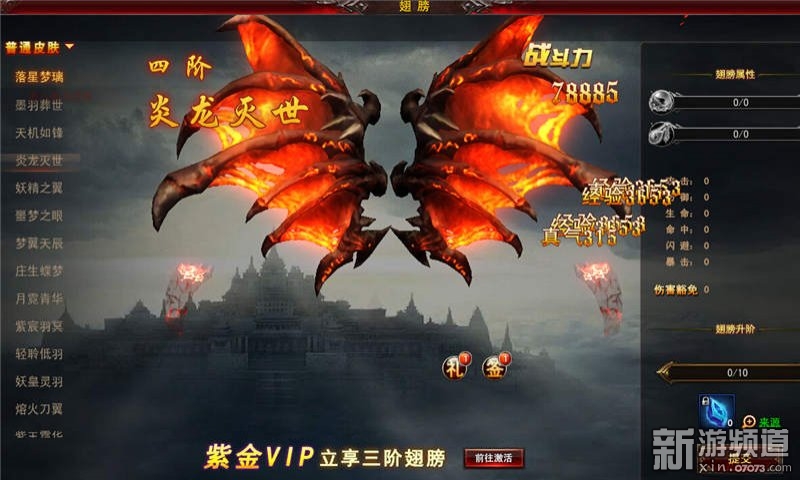 玩家在60級(jí)可開啟翅膀。同時(shí)隨著翅膀品階提升,可激活強(qiáng)力技能提升打怪速度。