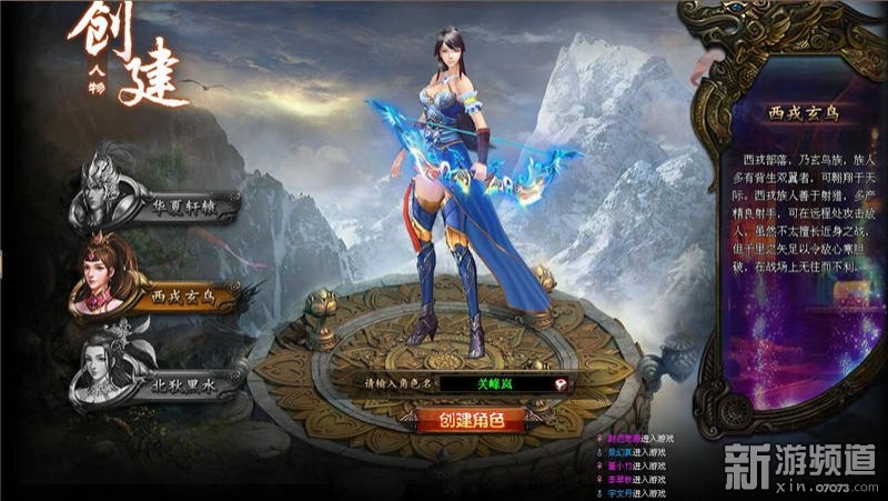 游戲開(kāi)局,三大職業(yè)角色供玩家選擇,右側(cè)有詳細(xì)的角色介紹。