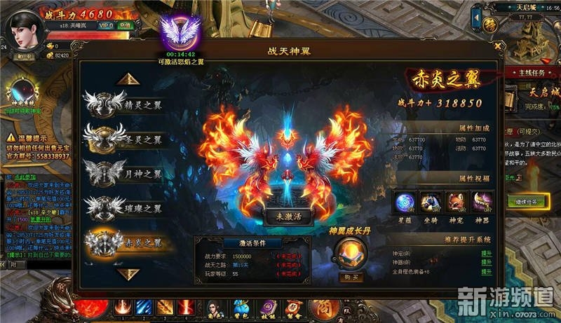 戰(zhàn)天神翼是游戲的主線養(yǎng)成玩法。神翼一共有10種,每激活一種神翼,會(huì)切換角色背后的翅膀模型。