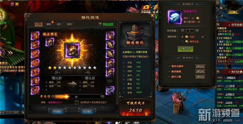 裝備鍛造系統(tǒng)包含多種進(jìn)階功能??蓪?duì)所有裝備進(jìn)行強(qiáng)化進(jìn)階,使用此功能消耗強(qiáng)化石。