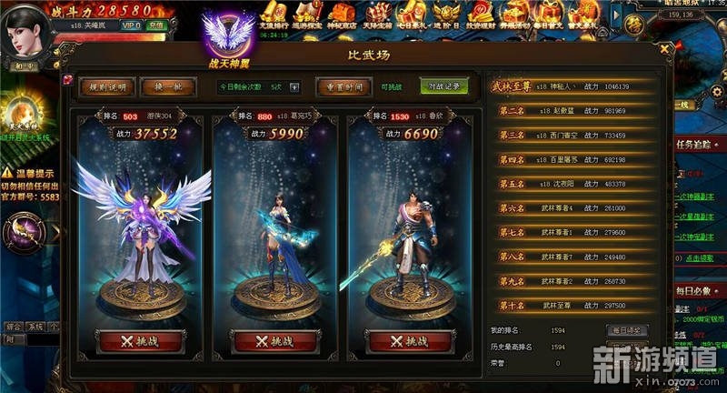 玩家每天在比武場(chǎng)中可以進(jìn)行5次挑戰(zhàn),挑戰(zhàn)的對(duì)象是其它玩家,屬于間接的PVP。