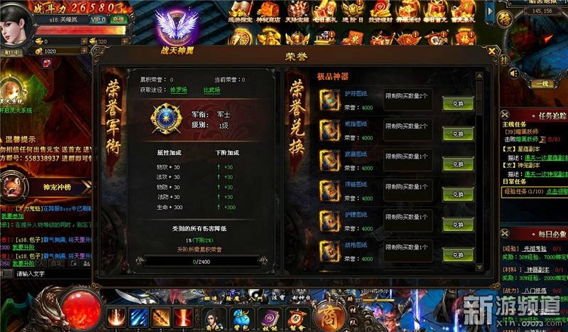 榮譽(yù)系統(tǒng)可以累積榮譽(yù),會(huì)隨著玩家累計(jì)的榮譽(yù)而不斷提升。也可以消耗購(gòu)買(mǎi)指定道具。